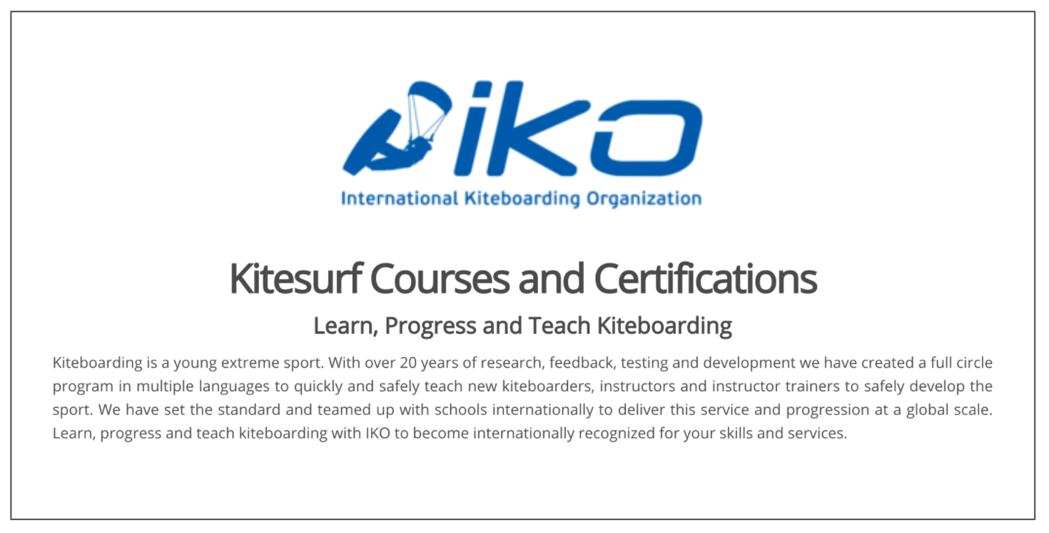 IKO, the International Kiteboarding Organization, offers a worldwide professional training program.